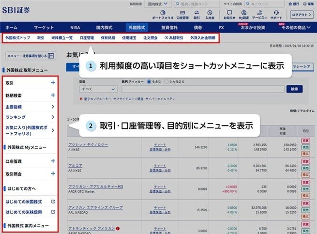 株式会社SBI証券(本社:東京都港区、代表取締役社長:髙村正人、以下「当社」)は、2026年1月24日(土)夜間より、外国株式取引サイトのリニューアルを実施しますのでお知らせします。