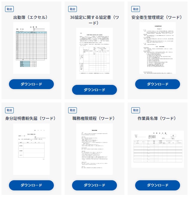 実務で使用できる賃金台帳や出勤簿、労働者名簿などのテンプレートを無料でダウンロード可能に