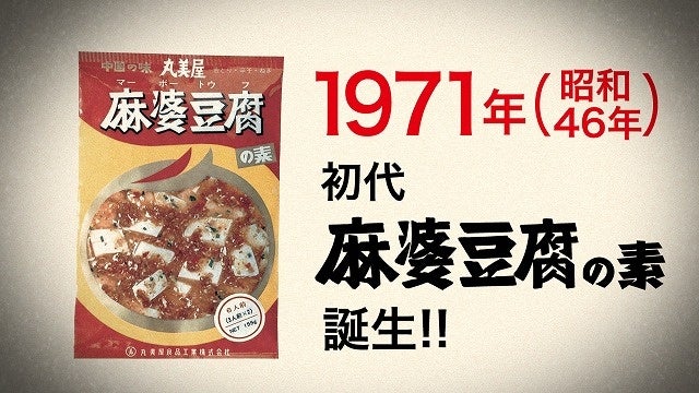 1971年に発売した丸美屋「麻婆豆腐の素」。発売当時日本では、馴染みがなく、一部の中華料理店でしか食べることのできなかった麻婆豆腐をご家庭で手軽に味わってほしいという想いで発売された商品です。ひき肉入りなので豆腐を1丁用意するだけで、簡単に作ることができます。丸美屋オリジナルのトロミ粉付きで、3人前×2回分入りです。