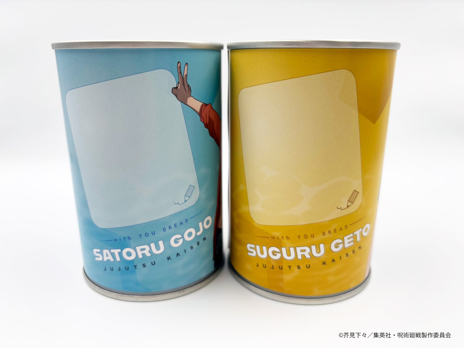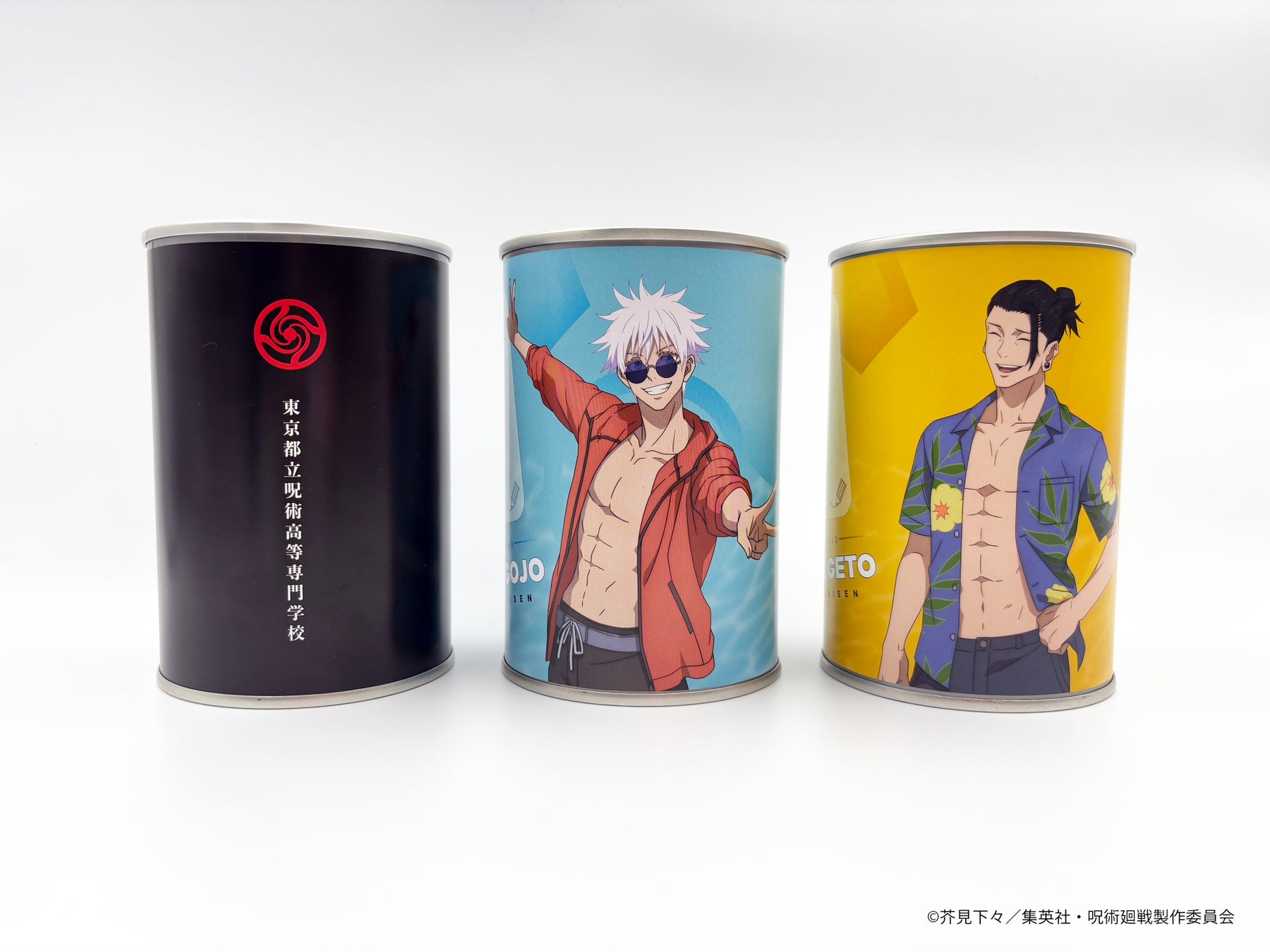 『呪術廻戦』「懐玉・玉折」の缶詰パンには、呪術高専の校章デザインのほか、作中に登場する五条 悟と夏油 傑がデザインされた全3種がラインナップ!