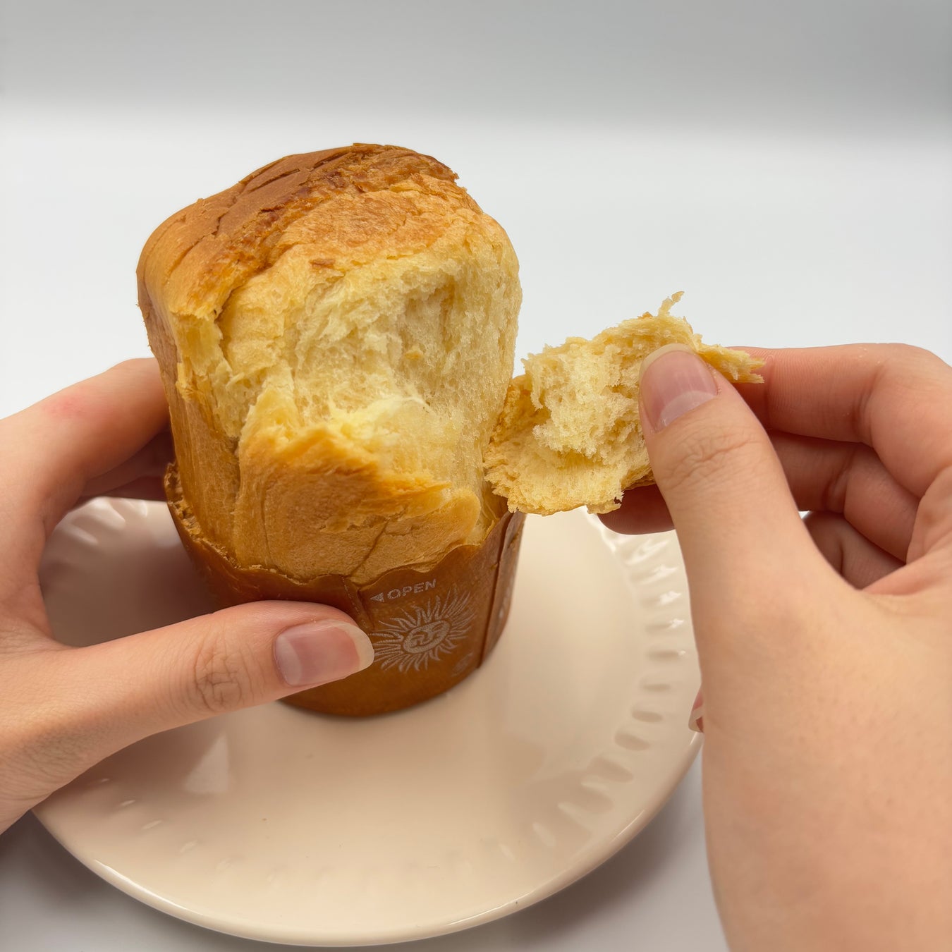 缶切りを使用せずに開けられるイージーオープン缶の蓋を外し、缶詰を逆さまにするとカップに入ったパンが簡単に取り出せます。