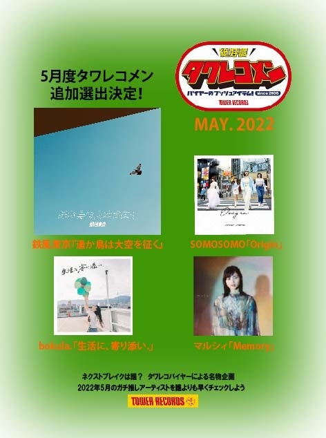 ◆2022年5月度タワレコメン・ラインナップ(決定) ※50音順