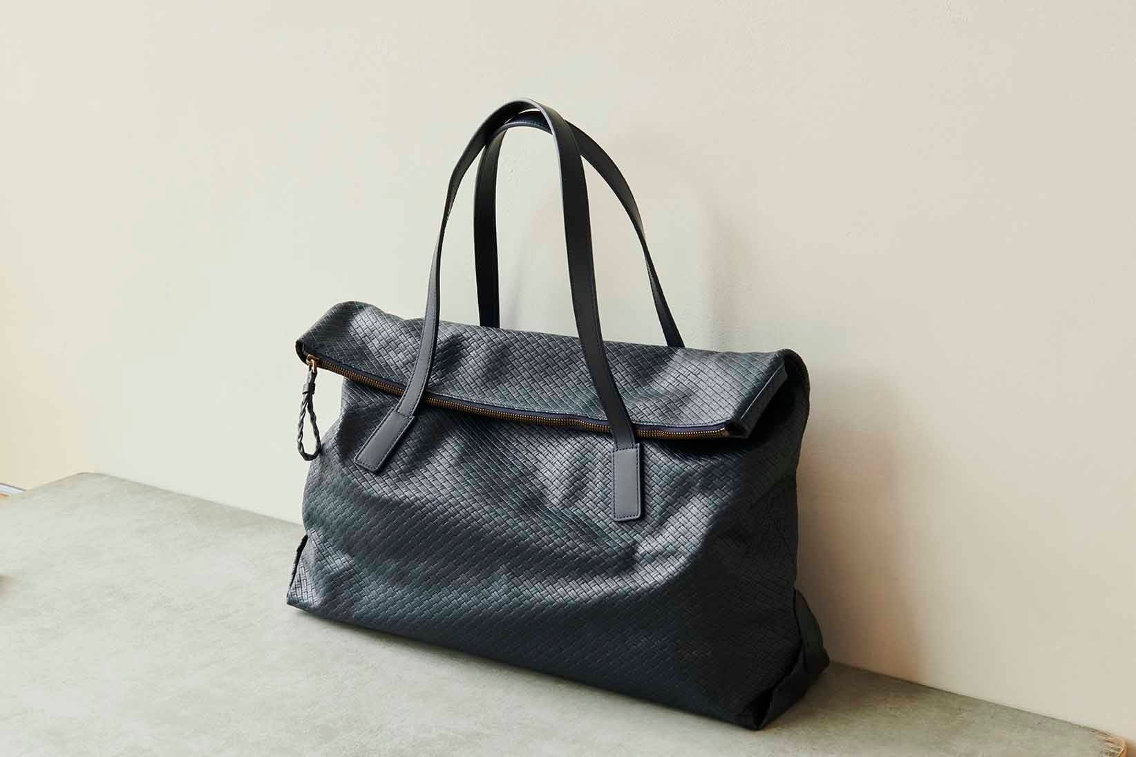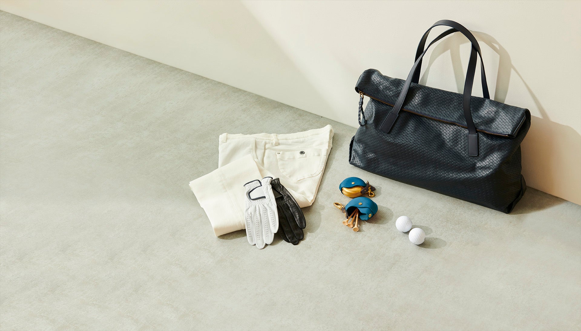 ■選び抜かれた至高の素材、その魅力を引き出すシンプルで使い勝手のよいデザイン、それを形にする熟練の職人仕事…。日本を代表するマニュファクチャーファクトリー「二宮五郎商店」は、1946年の創業以来、職人の街として知られる東京都墨田区で妥協なきものづくりを続けてきた。2019年に初登場した二宮のオリジナルレザー「アジログレイン」は、完成に至るまで幾度も試作を繰り返し、日本伝統の「網代編み」を型押しで表現した唯一無二のレザー。このアジログレインのボストントートは、くったり・ゆったりとした絶妙なこなれ感で、ラウンド時の相棒として持ち歩きたい逸品。