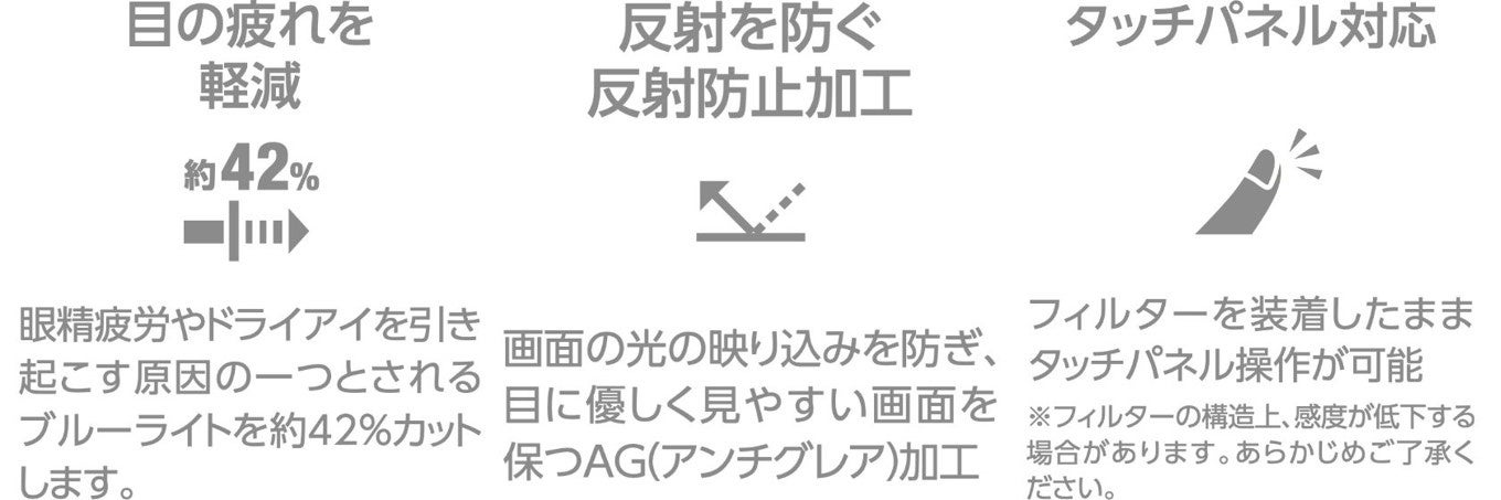 ※1 フィルターの構造上、タッチパネル対応機器によっては感度が低下する場合があります。