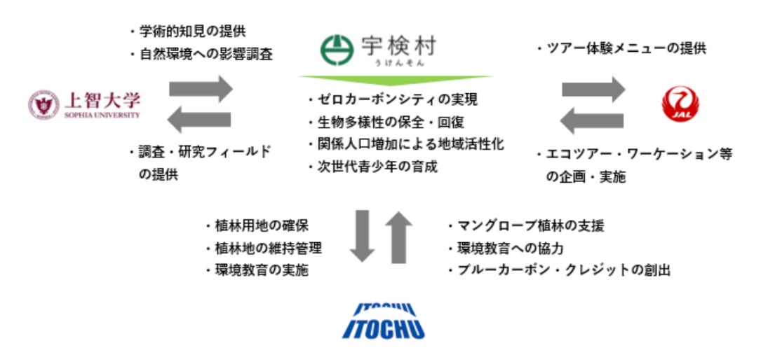 鹿児島県の奄美大島に位置する宇検村(所在地:鹿児島県大島郡、村長:元山 公知)、上智大学などを運営する学校法人上智学院(所在地:東京都千代田区、理事長:アガスティン サリ、以下「上智大学」)、伊藤忠商事株式会社(所在地:東京都港区、代表取締役社長COO:石井 敬太、以下「伊藤忠商事」)、日本航空株式会社(所在地:東京都品川区、代表取締役社長 グループCEO:赤坂 祐二、以下「JAL」)の4者は、宇検村での環境保全と地域振興に取り組む事を目的に、2023年9月17日付で連携協定を締結しました。