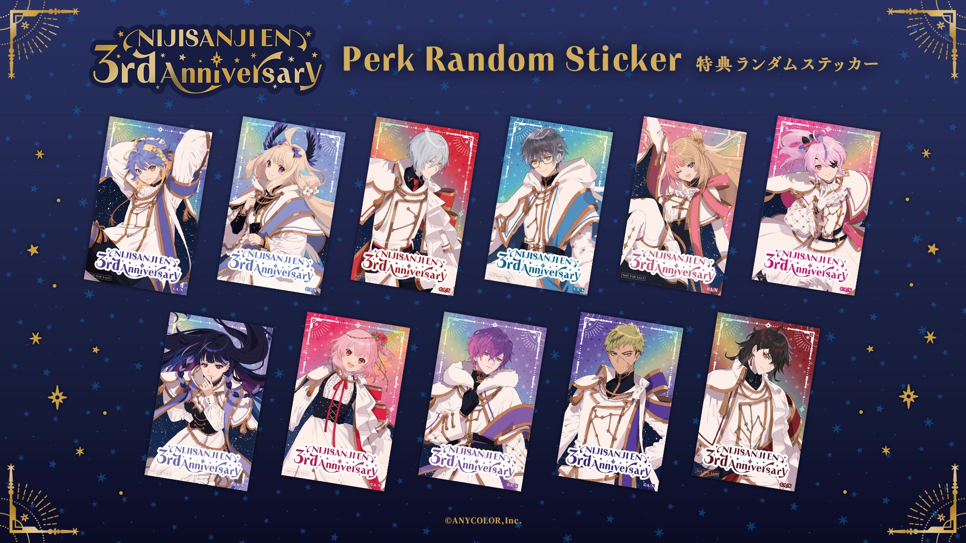 「NIJISANJI EN 3rd Anniversary Campaign」のタグがついている商品を税込3,000円以上ご購入いただいたお客様に 、「ホログラムステッカー(全11種ランダム)」をプレゼント!