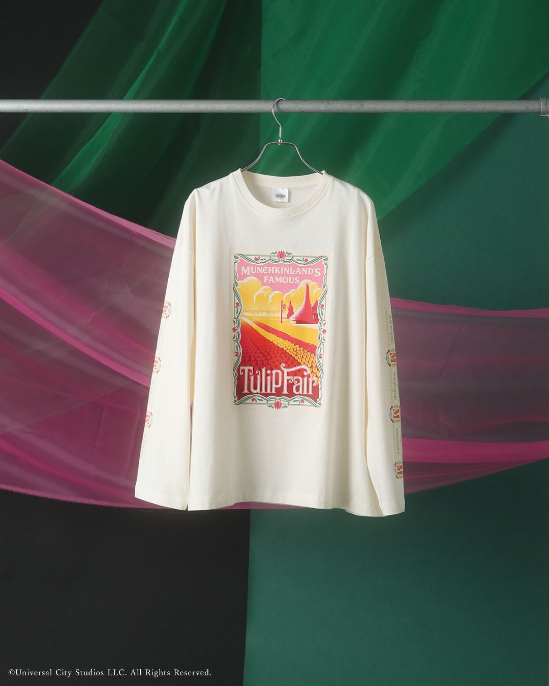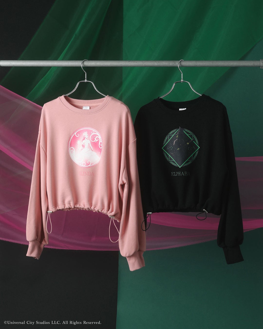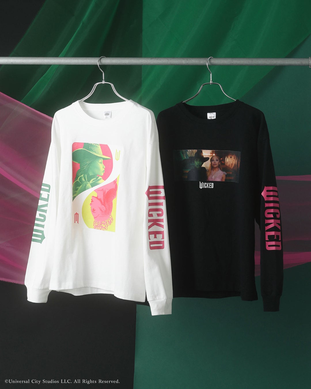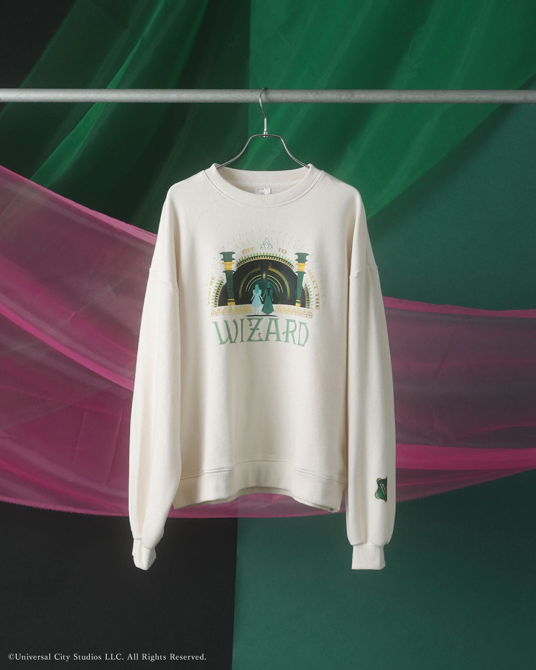 映画のワンシーンや、ふたりの魔女のシルエットとタイトルロゴが印象的なトップスなど、『ウィキッド』の世界に引き込まれるようなアイテムをラインアップ。エルファバとグリンダがエメラルドシティへ旅立つ様子や、対照的でありながら友情を築くふたりの魔女を刺繍で施したデザインなど、カジュアルなスウェットとロンTに作品の世界観を落とし込みました。