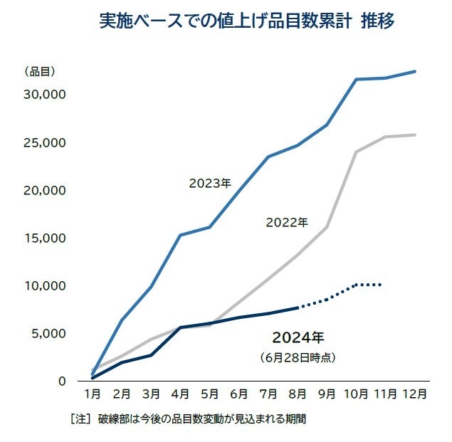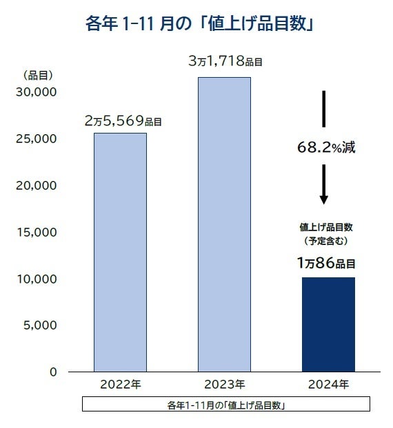 2024年の値上げ、3年連続で1万品目を突破 前年より5カ月遅いペース