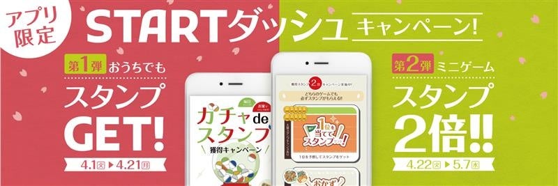 新たにスタンプをためるSTARTダッシュキャンペーンとして、第1弾はおうちでも公式アプリからスタンプがゲットできる『ガチャdeスタンプ』を4月1日(火)より実施いたします。