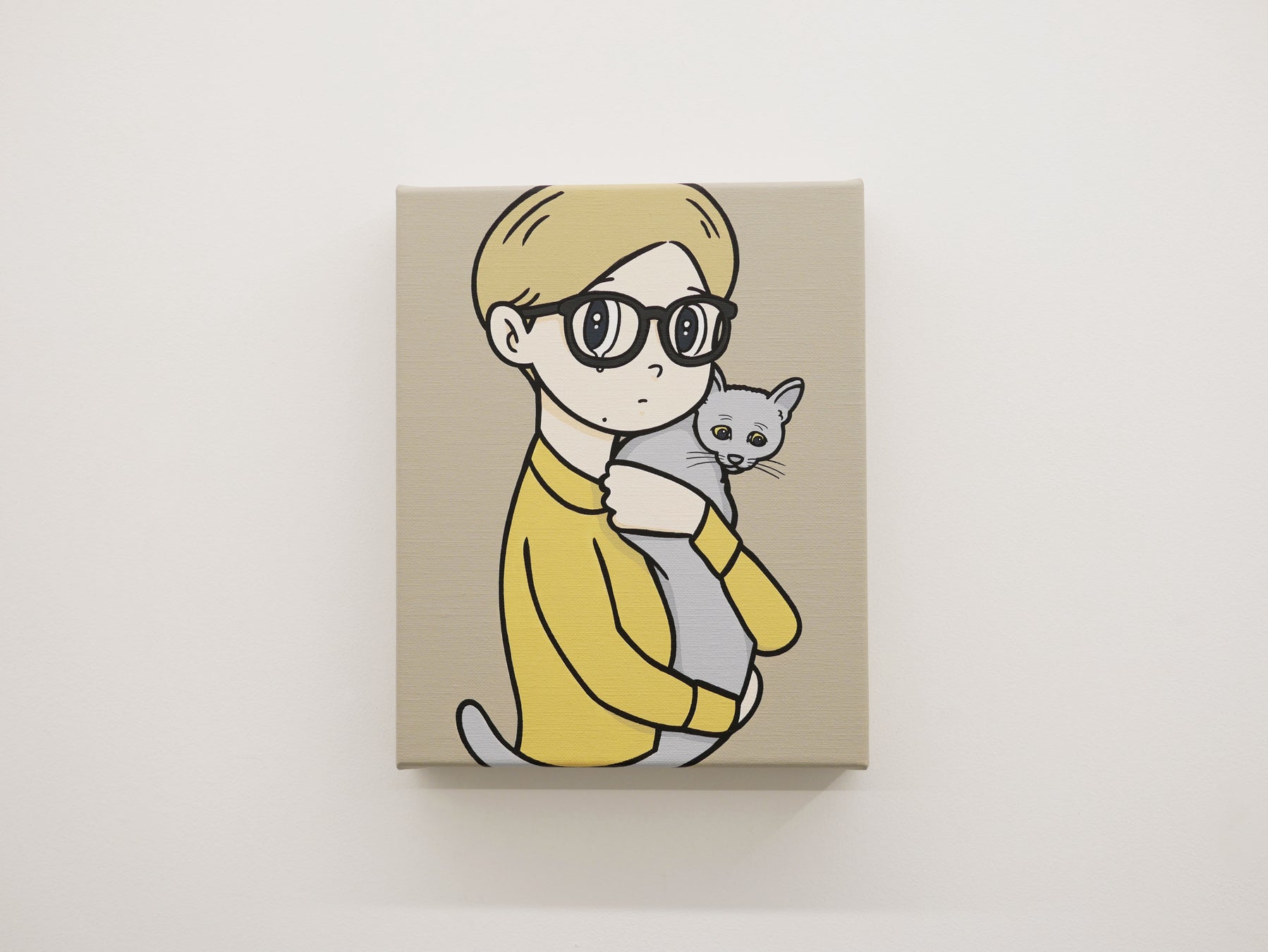 橋爪悠也は1983年、岡山県に生まれ、東京を拠点に活動をしています。これまで橋爪は、戦後の大衆文化のなかで親しまれたマンガのタッチを意識した「eyewater」シリーズを発表し、それらは彼の代表作として親しまれてきました。「色の歌を聴け」と題した本展では、近年橋爪が改めて思いを巡らせている「色」をキーワードにしています。「eyewater」シリーズを含む過去作品からピックアップした作品を3号サイズにて新たに制作し、展示するほか、菩薩をモチーフとしたM80号の「悩める菩薩ちゃん」を発表します。「色相環」を後光のように背負い、右手に筆、左手に色の文字を浮かべた、京都での本展開催を受けて制作した新作です。展示作品の中には、過去に海外などで展示されたために広くお披露目できなかったものも含まれており、本展はこれまでの”ベストアルバム”としての要素も含んでいます。豊かな色に彩られ、茶の湯の文化へのオマージュを込めて2畳の茶室をしつらえた会場にて、橋爪の作品世界をお楽しみください。