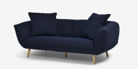 丸みを帯びたやわらかなフォルムが、心地よいリラクゼーションをもたらすソファです。共生地のクッションが2個付属し、統一感のあるスタイリングが楽しめます。シックなネイビーの張地はモダンな空間にもよく調和し、上質なアクセントに。脚元の空間は約18cmと余裕があり、お掃除ロボットにも対応しています。