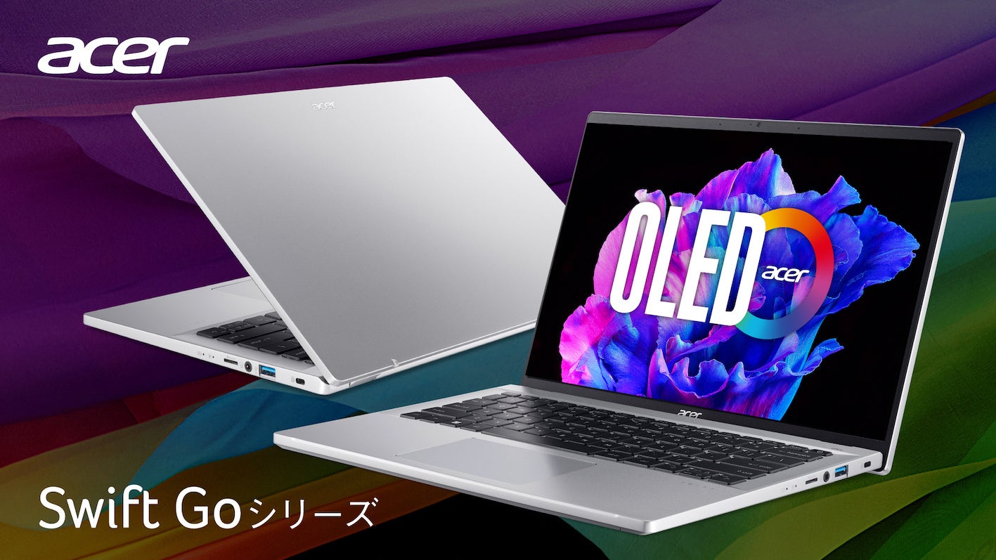 引き締まった黒と鮮やかな色彩を映し出す14インチ 有機ELパネル採用!外出先への持ち運びに最適な、法人市場向けモバイルノートパソコン Swift Goの2機種、6月上旬に発売
