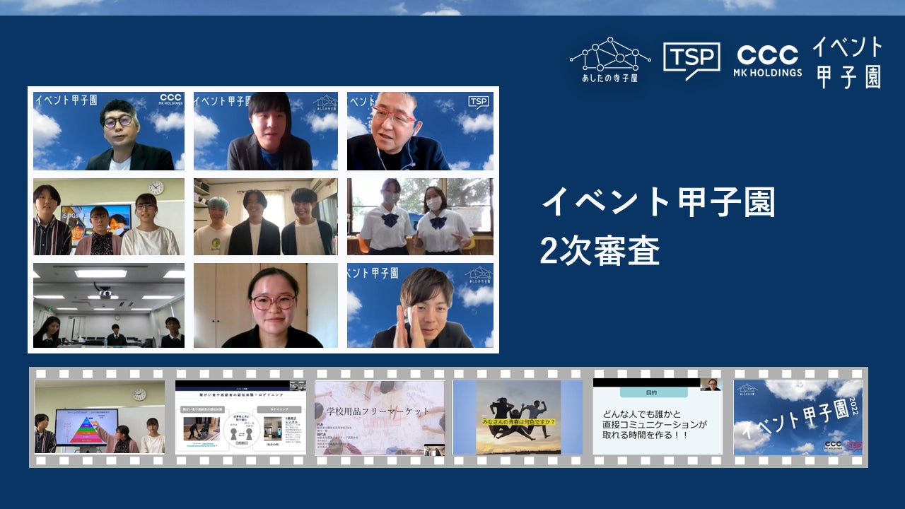 株式会社あしたの寺子屋(本社:北海道札幌市、代表取締役社長:嶋本勇介)、TSP太陽株式会社(本社:東京目黒区、代表取締役社長:池澤嘉悟)、CCCMKホールディングス株式会社(本社:東京渋谷区、代表取締役社長:髙橋誉則、以下「CCCMKHD」)の3社は、三菱みらい育成財団助成採択事業として、高校生が自分のワクワクをイベントとしてカタチにする「イベント甲子園2022」を初めて開催しました。2022年10月16日(日)にオンラインでのプレゼンテーション審査を行い、優勝・準優勝の2団体が決定いたしましたので、お知らせいたします。