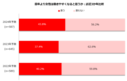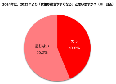 【2024年予測 女性は働きやすくなるのか】「なると思う」43.8% 一方で2023年は働きやすくなった実感「ない」70.4%