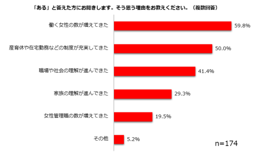 2.働きやすくなった実感「働く女性の数が増えてきた」59.8%