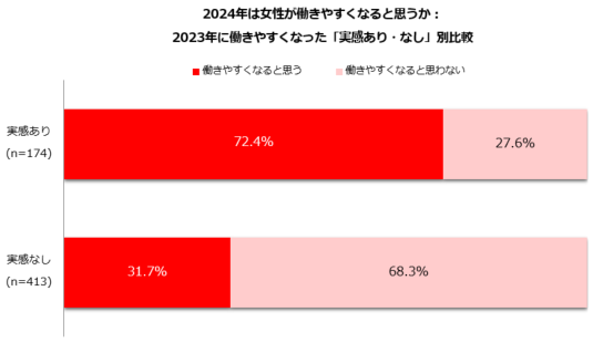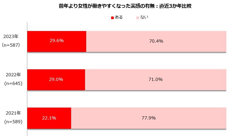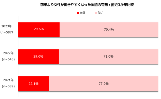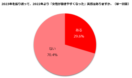 1.2023年を振り返り、女性が働きやすくなった実感「ない」70.4%/3か年比較