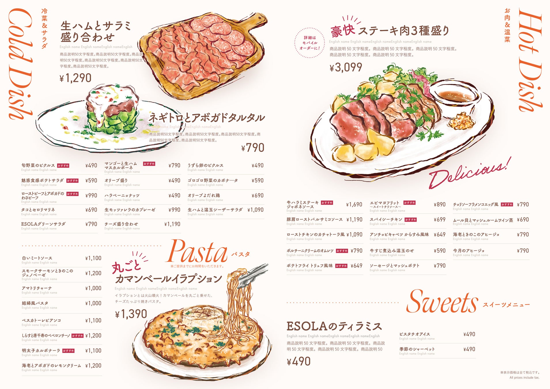 客単価 :ディナー 3,000円~4,000円