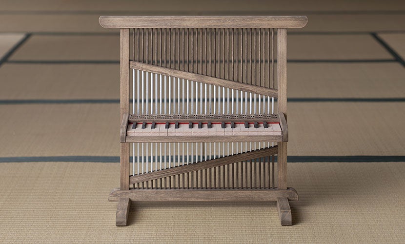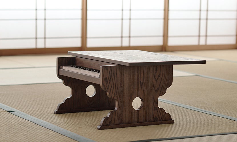 狭い長屋では、一つで二役も三役も兼ねる家具が重宝されていました。文机に鍵盤を仕込み、脚のシルエットには寺子屋机の様式を取り入れました。