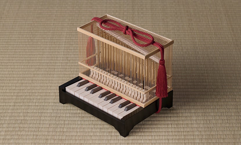 江戸時代には、大人用の風情のある虫篭に季節の虫を入れてその鳴き声を愉しむ風習がありました。音と同時に籠の中でハンマーが飛び跳ねて発音する様子を楽しむことができます。※講談のなかで音を奏でます
