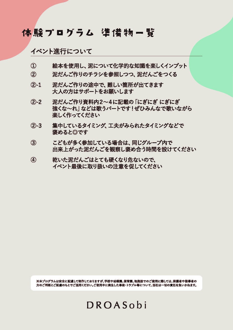 「DROASobi~どろのふしぎ体験プログラム~」について