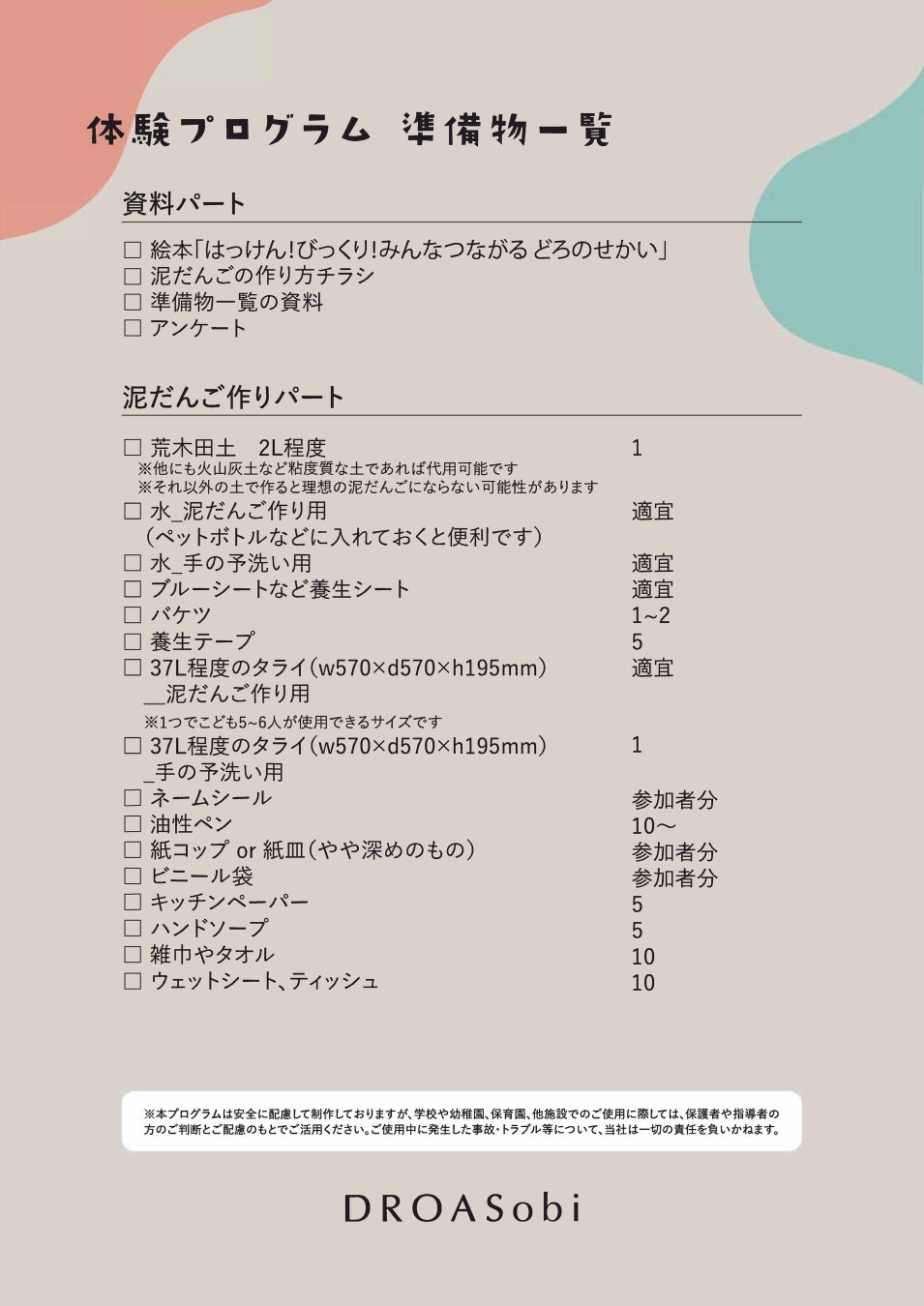 「DROASobi~どろのふしぎ体験プログラム~ 」教材セット