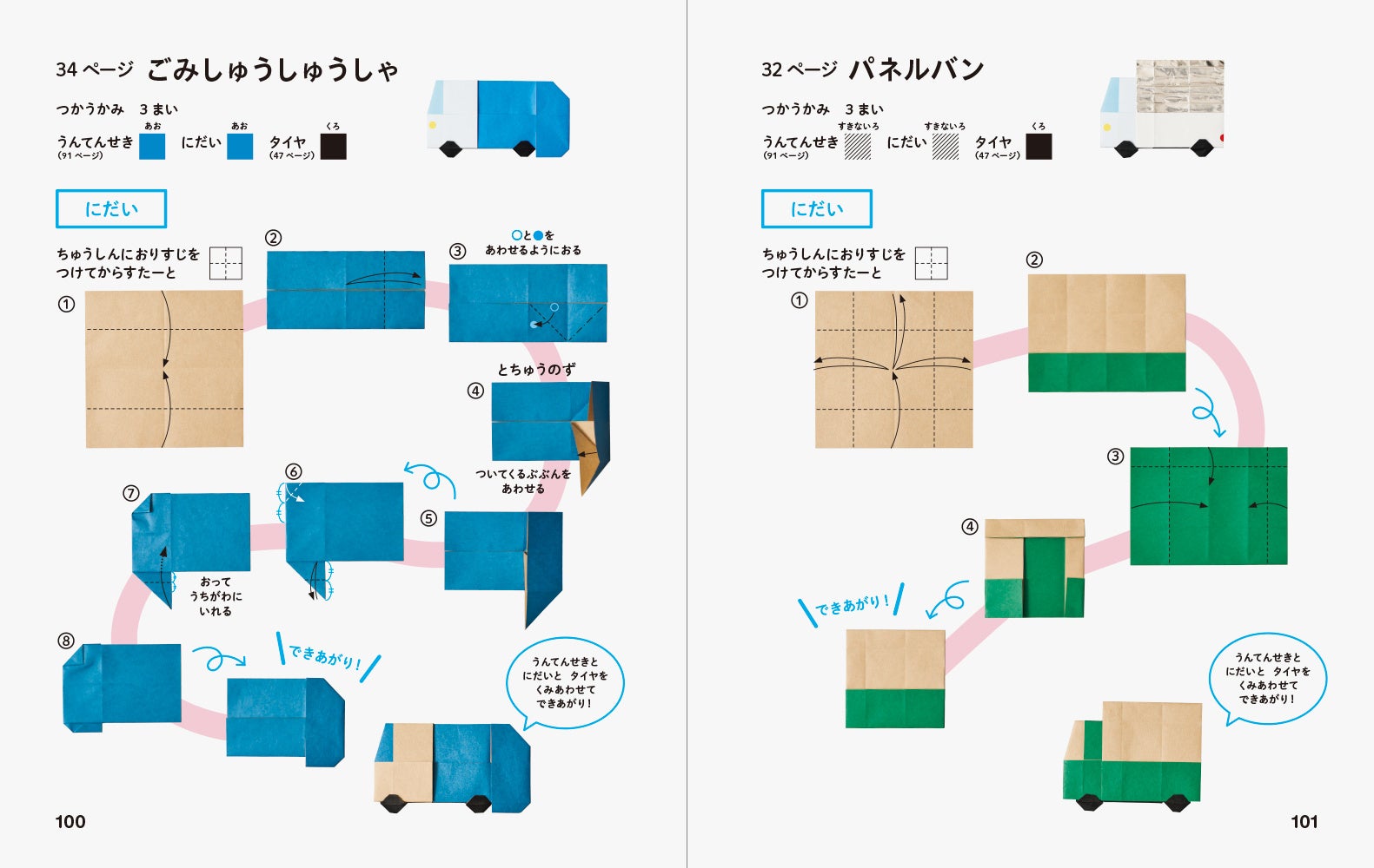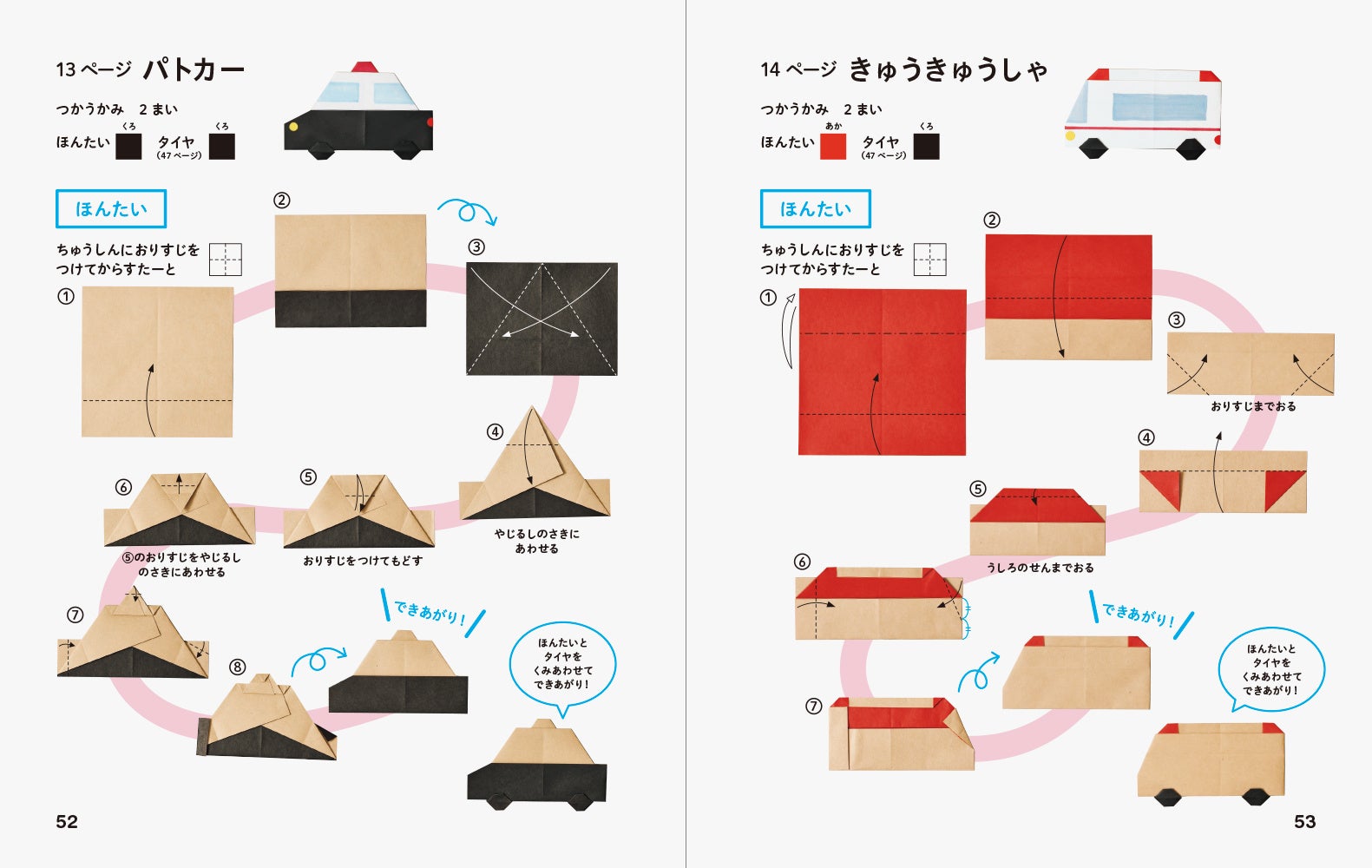 絵本を読むように、楽しいストーリーと一緒にかわいい折り紙の作品を紹介します。今回のテーマはのりもの。街を実際に走っている車や電車はもちろん、海や空の乗り物まで、子どもたちに人気の乗り物が大集合。付録で大きな街のマップポスターがつき、折った乗り物たちを動かして遊ぶことができます。折り方のプロセスはすべてわかりやすい写真で解説しています。