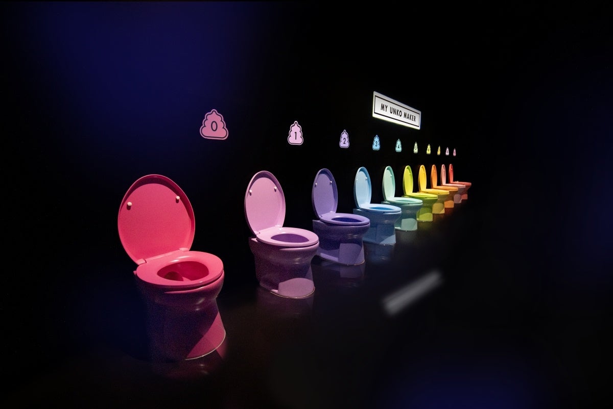 カラフルな便器に座って、うんこミュージアムをともに巡る「マイうんこ」を生み出しましょう。入館する前にうんこへの固定観念を水に流す場所でもあります。