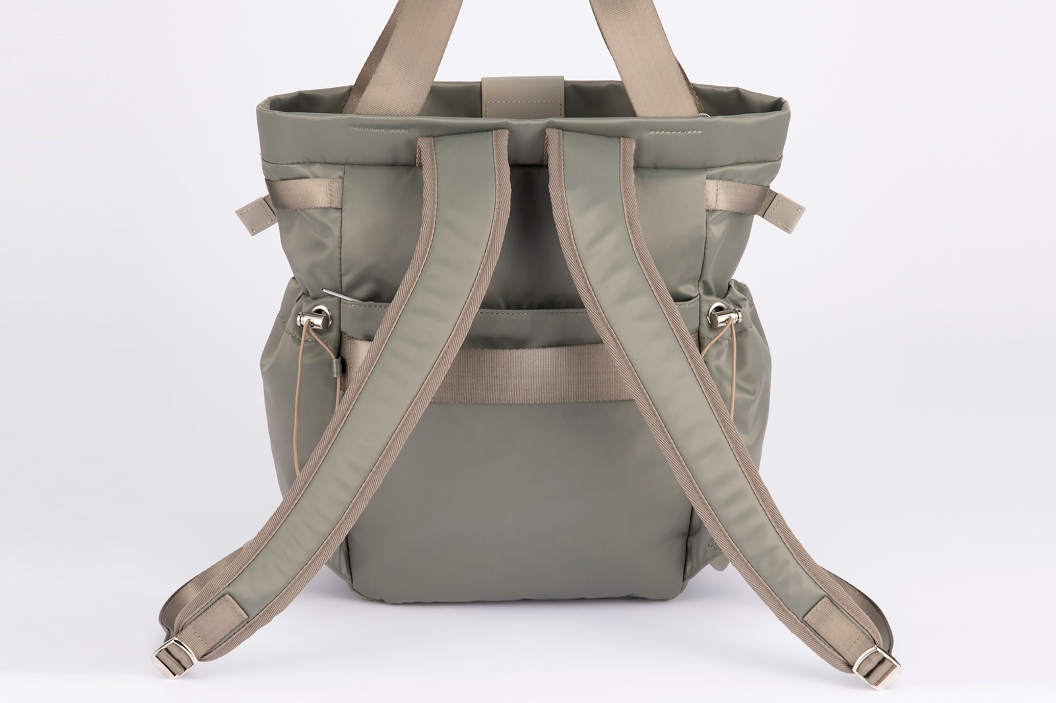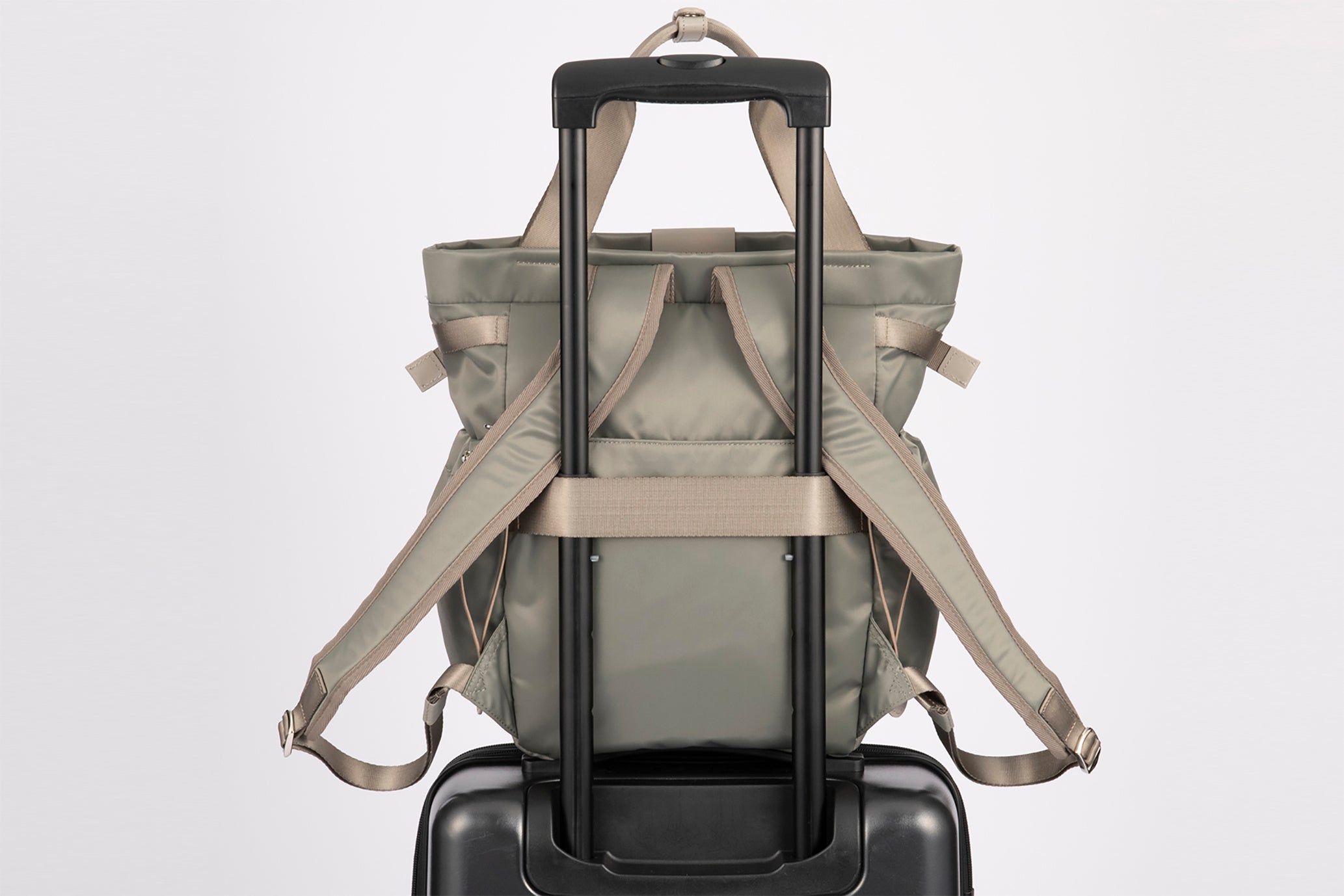 光沢が美しいサテン織のマテリアルや、大容量の収納部、豊富なポケットはそのままに、新たに身体にフィットするユニバーサルハーネス™を搭載し、ミニマルなデザインにアップデートしました。