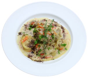 ゴディバ発祥の地ベルギーの郷土料理にホワイトチョコレートが奥行とコクを添え、ダークチョコレートと香草の巧みなブレンドが洗練された味わいに。