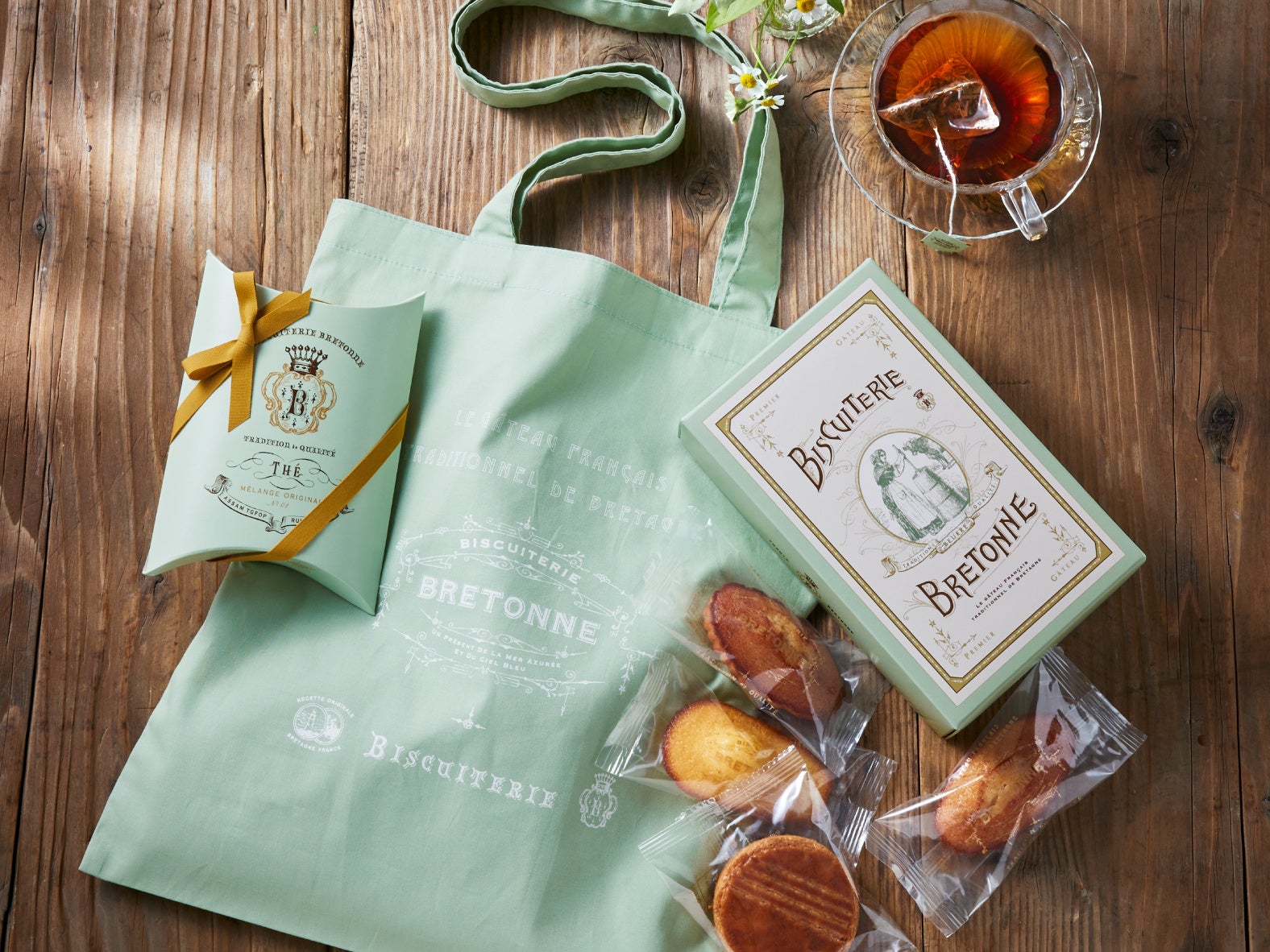 【 内 容 】ブルトンヌ オリジナルコットンバッグ、ブルトンヌ オリジナル紅茶(5 個入)、 ガレット・ブルトンヌ アソート(4 個入)×各1