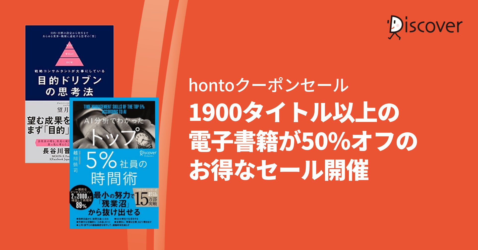 【hontoセール】ディスカヴァーの電子書籍1900タイトル以上が50%オフのお得なクーポンセール開催