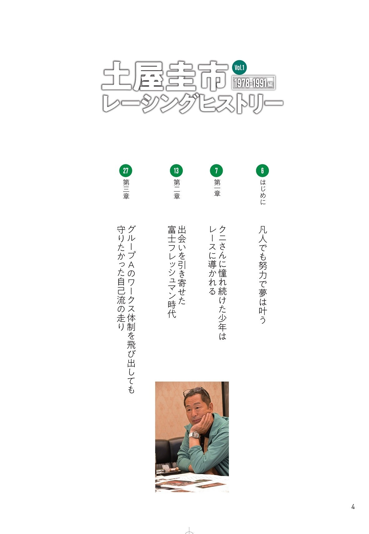 ドリフト&レース界のレジェンド、ドリフトキング土屋圭市が、レースでの『ドリキン伝説』を自身で振り返ります。Vol.1は1978年の富士フレッシュマンレースデビューから1991年の全日本ツーリングカー選手権(グループA)にR32スカイラインGT-Rで挑むまで! 当時の懐かしい写真が並び、見るだけでもときめくこと請け合いです。さまざまな人との出会い、学びや葛藤。ある天才に憧れ、ある努力家の隣に乗って『天才でなくてもプロになれる』と悟り、プロになることだけを夢見て、かっこ悪くても努力にすべてを賭けた男の生き様。それはファンのみならず、これからの生き方を模索する若い世代にも突き刺さるストーリー。ぜひ、ご覧ください!