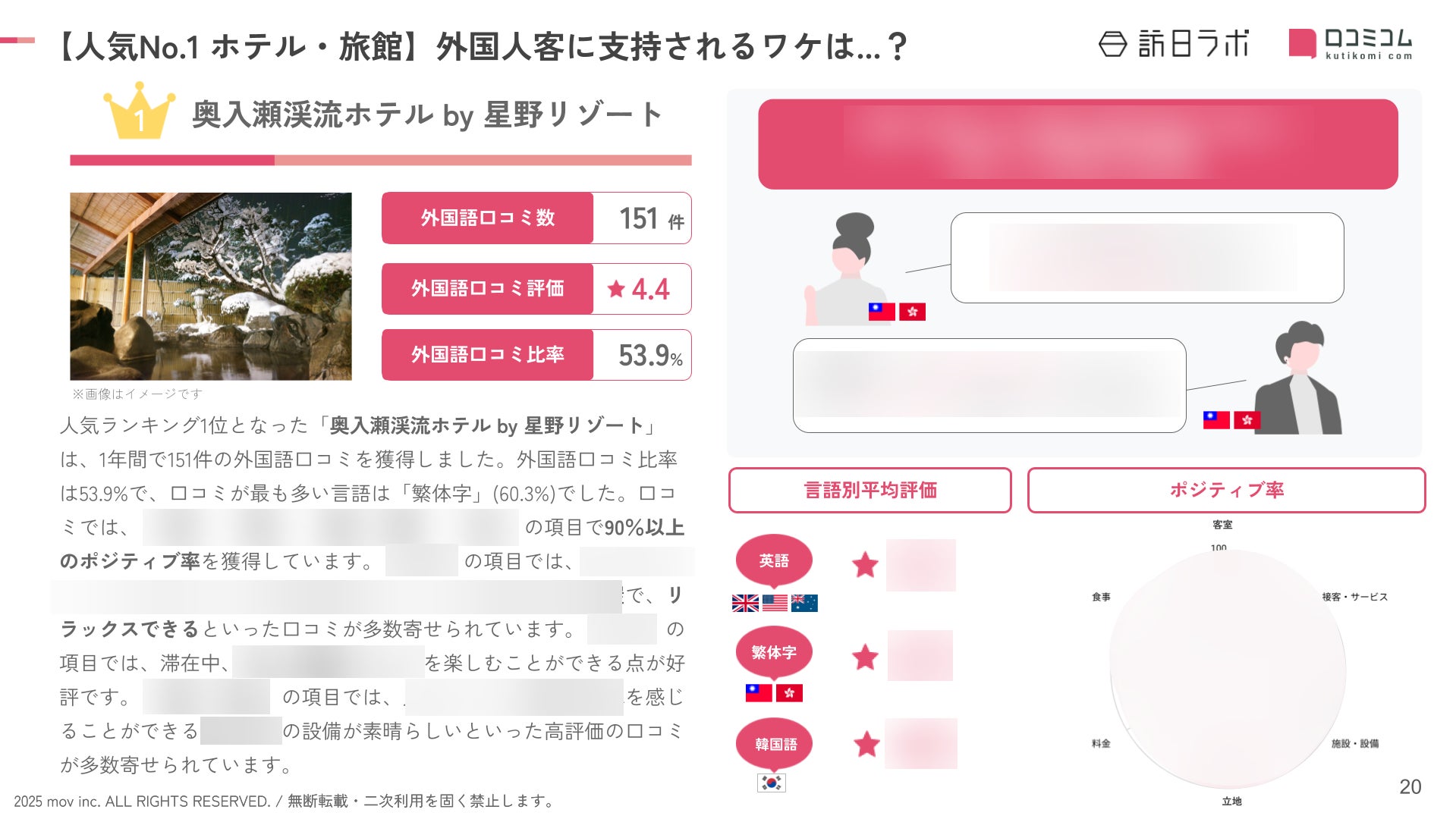 人気ホテル・旅館に寄せられた外国語口コミを分析