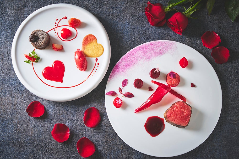 フォアグラのポワレや国産黒毛和牛ランプのグリエと恩納村産ビーツのマリアージュなど、シェフからお二人に贈る華やかなスペシャルディナーをロマンティックにご堪能ください。