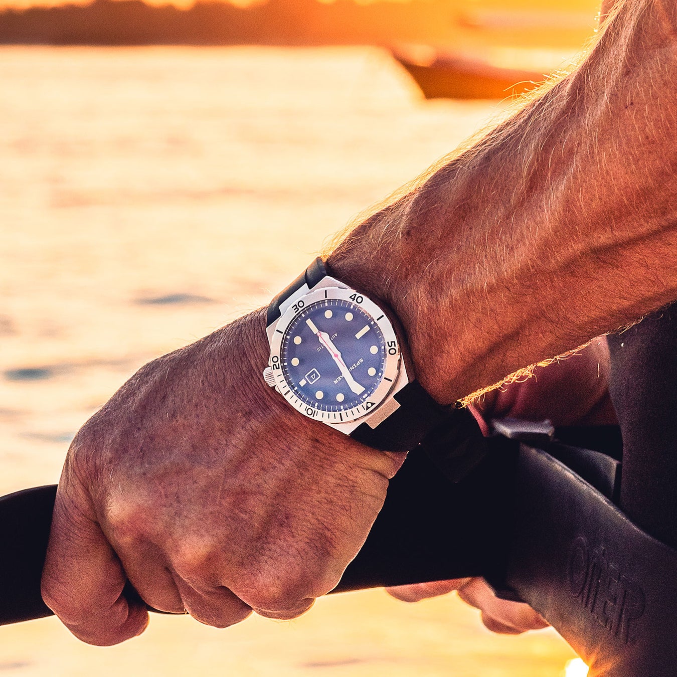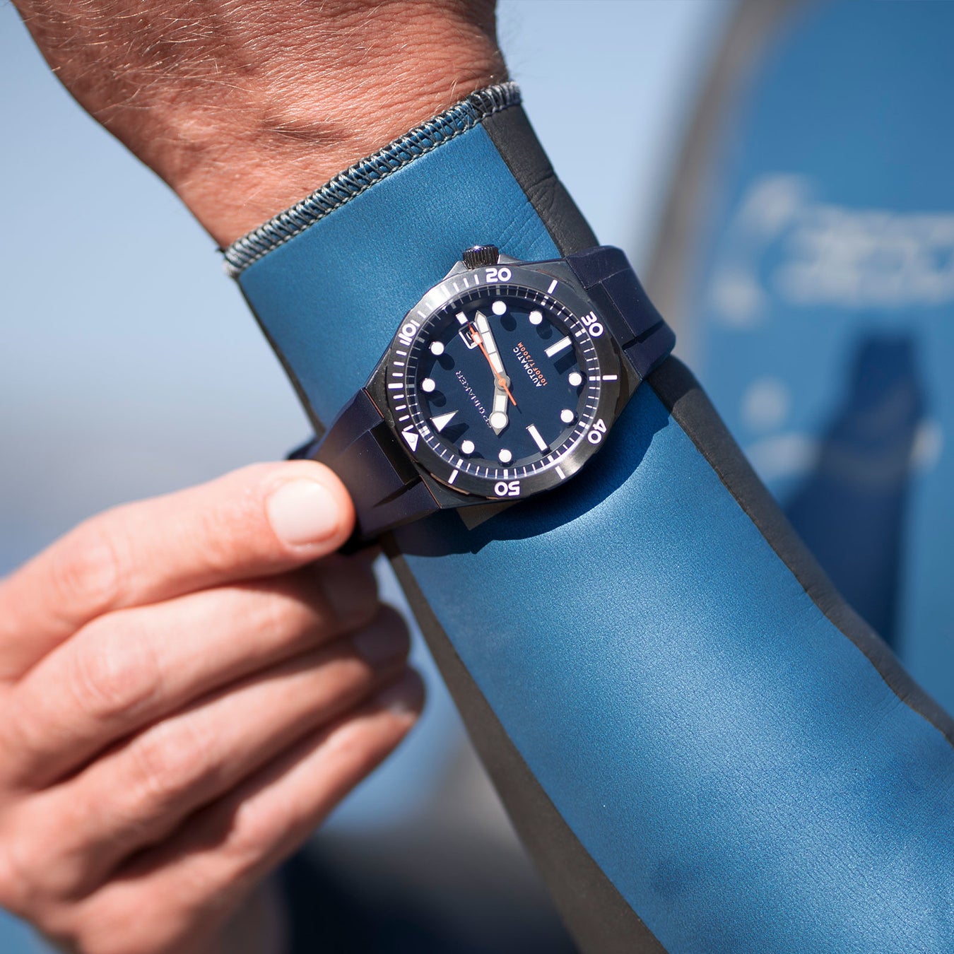 ヨットやフリーダイビング等の海のスポーツに関わる⼈々の腕時計としてデザインされています。