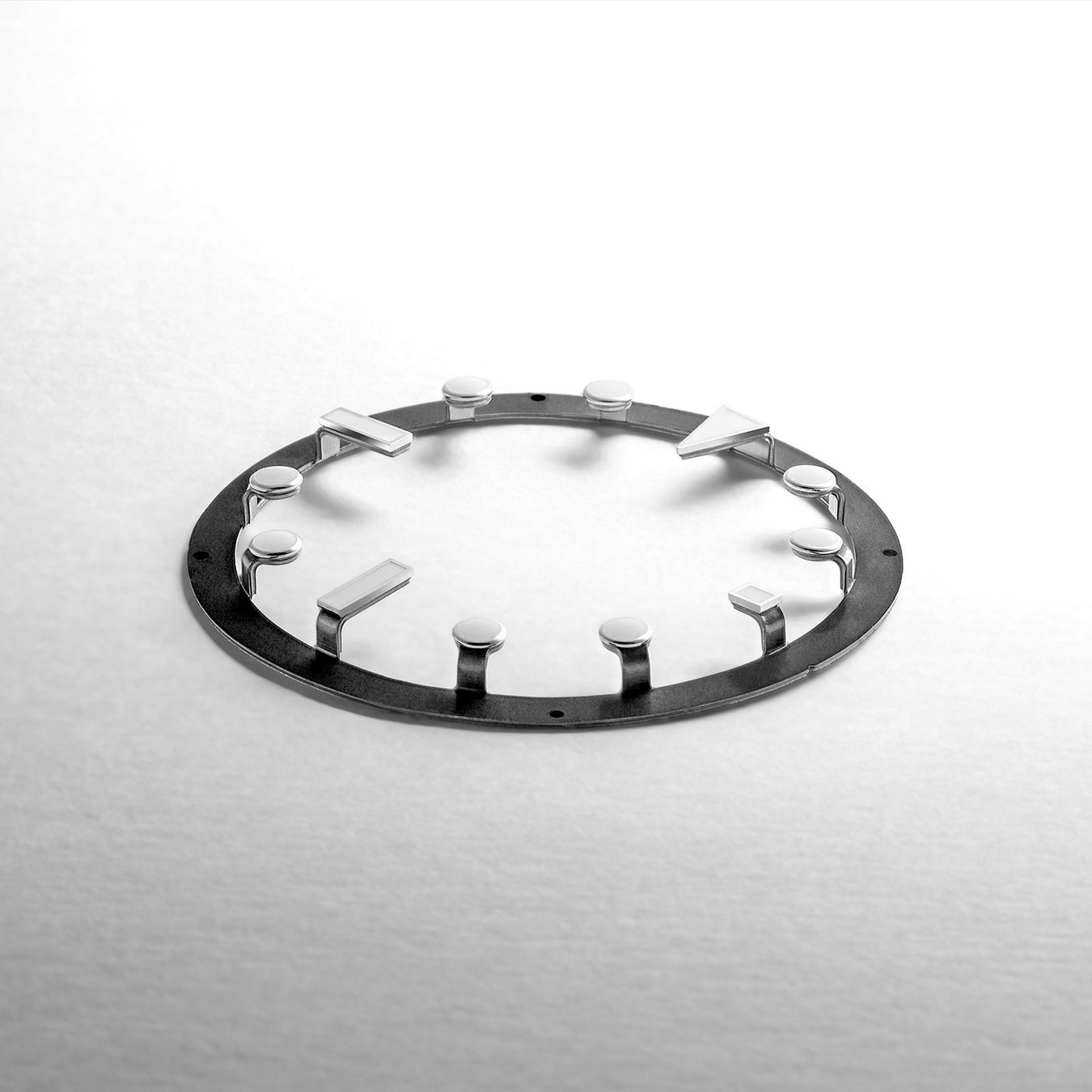 特筆すべき特徴の一つ目は、宙に浮いているかのように見える「フローティングインデックス」です。計算されたアワーマーカー(目盛り)の下を潜り抜けるような針の動きを嗜めます。