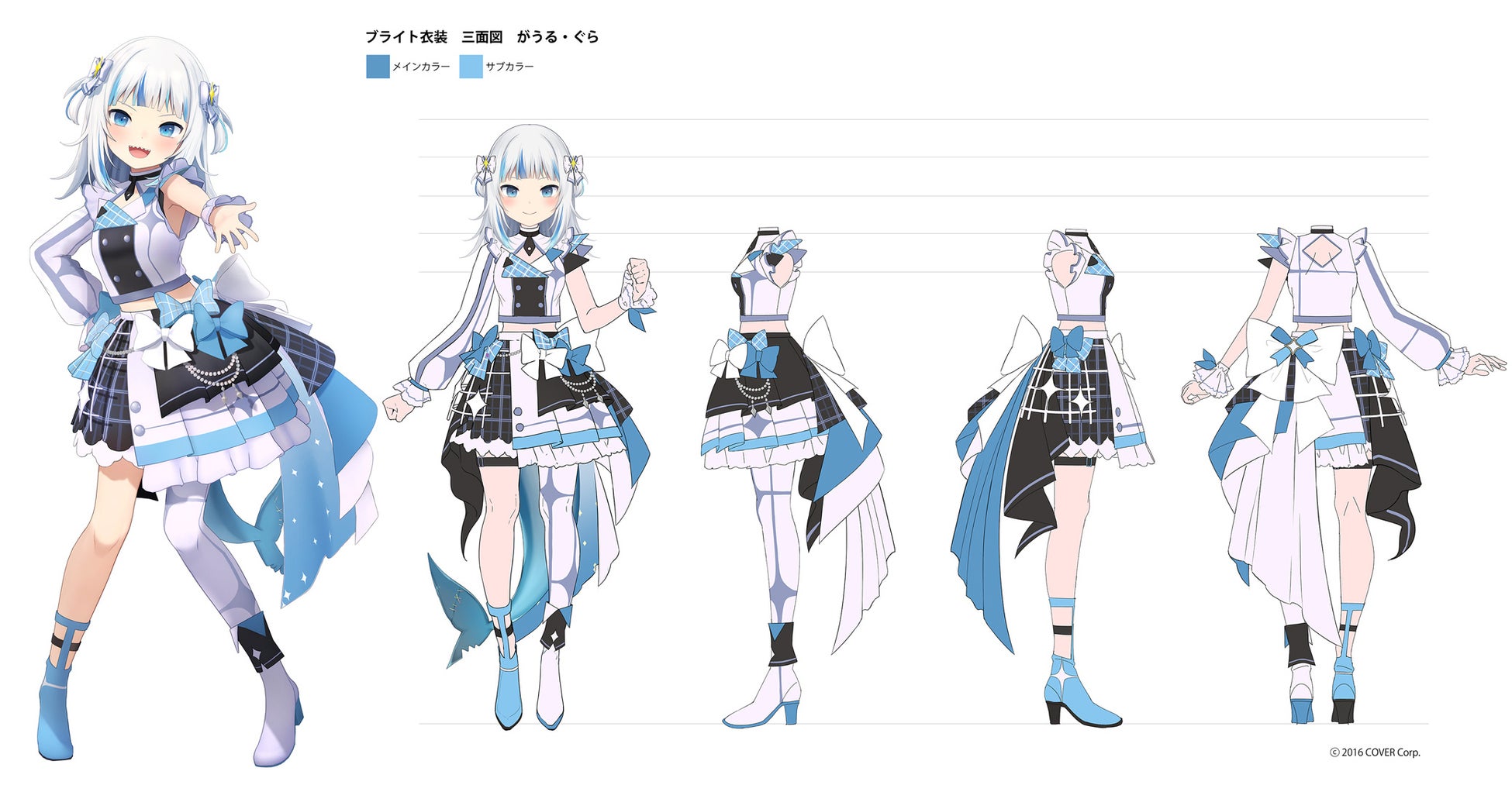 ブライト衣装のチーフアートディレクター兼ホロライブの衣装デザインをイラストレーター”おるだん氏”が担当し、ホロライブインドネシア、ホロライブEnglishの衣装デザイン原案はイラストレーター”Mika Pikazo氏”が担当しました。