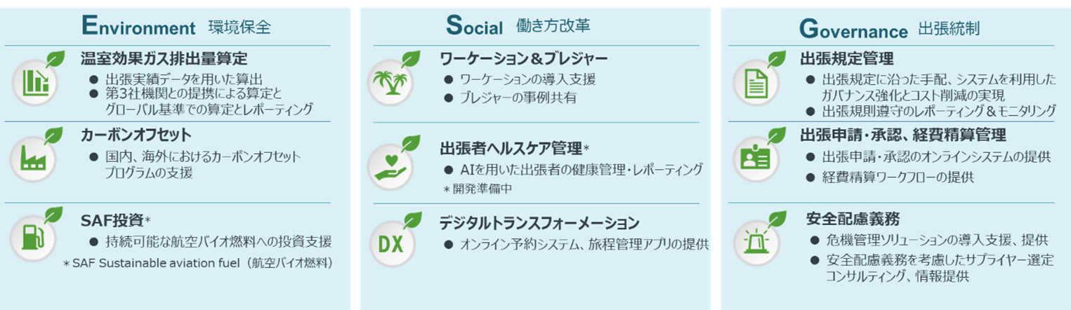 JTBビジネストラベルソリューションズが、ESG観点の出張管理サービスESG-BTMを提供開始