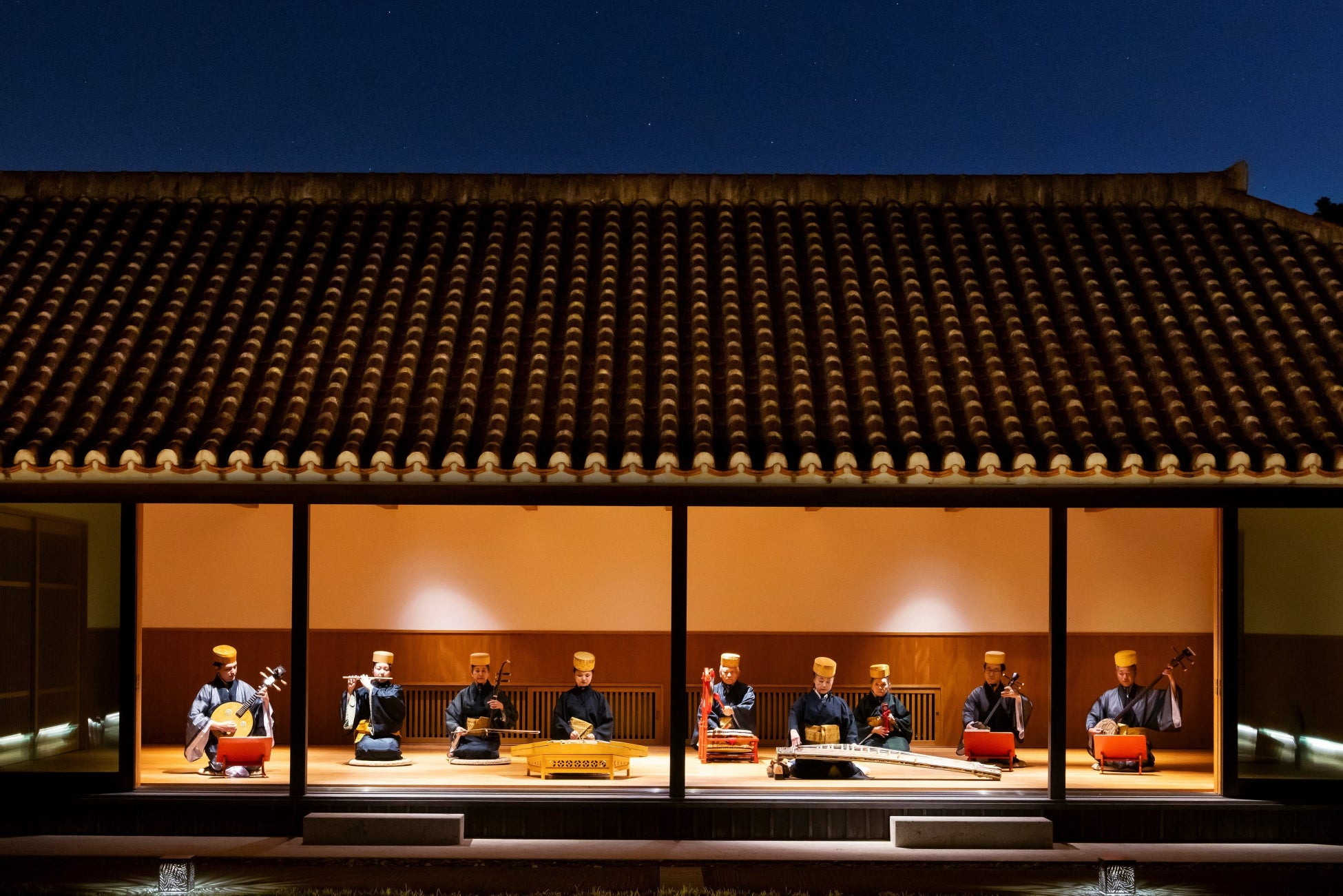 特徴1 新年の儀式にならい、琉球王国の雅楽「御座楽(うざがく)」や古典音楽を鑑賞