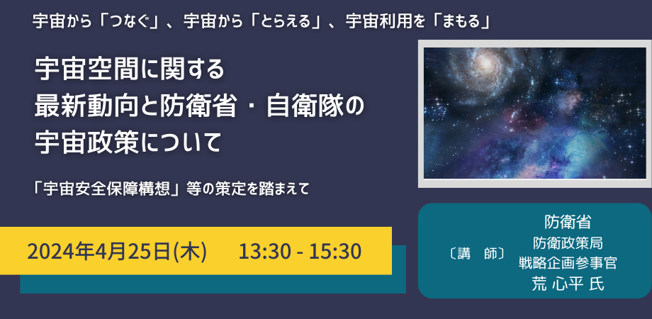 【JPIセミナー】「宇宙空間に関する最新動向と防衛省・自衛隊の宇宙政策について」4月25日(木)開催