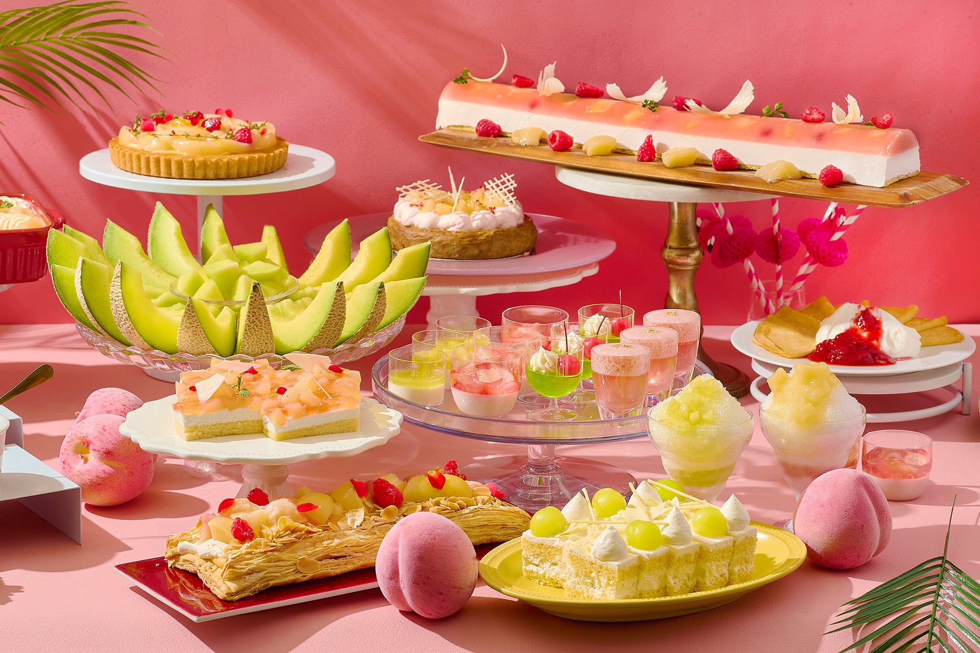 ピーチジュレ、メロンソーダ風ゼリー、桃のパンナコッタ、メロンミルクプリン