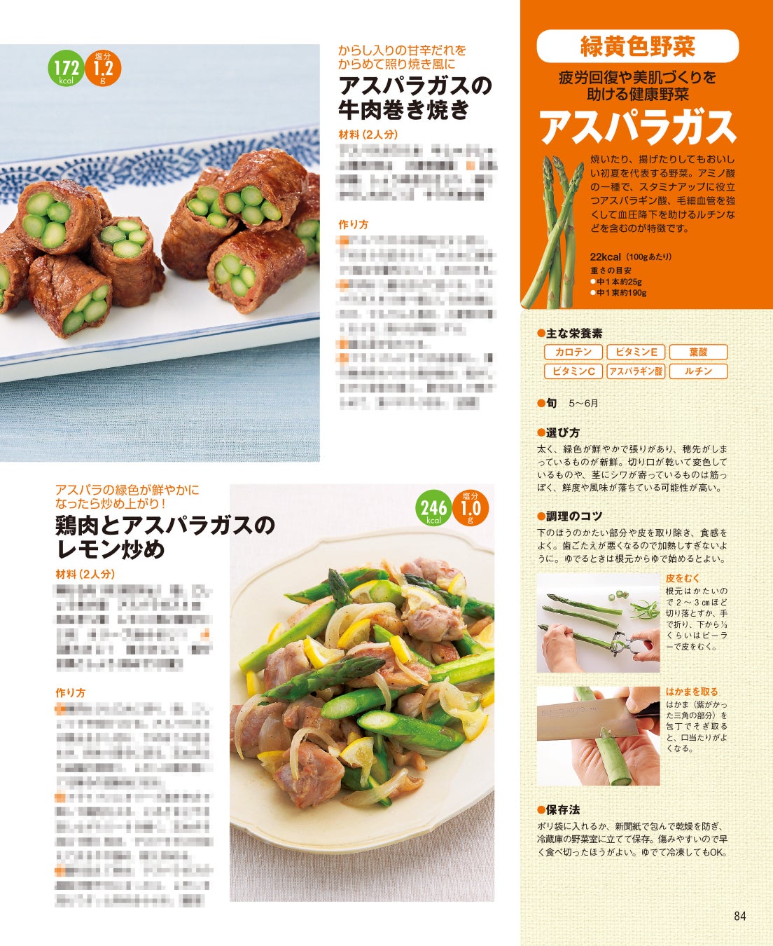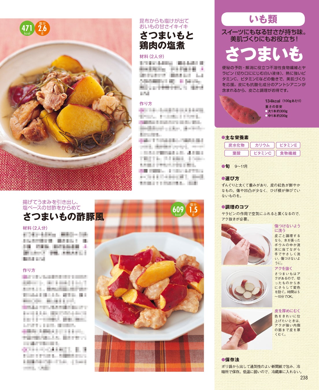 全てのレシピに、1人分のカロリー、塩分量が明記されているので気になる栄養面も一目瞭然。また、各食材の栄養価や保存方法についても詳しく紹介しているため、調理に役立ちます。