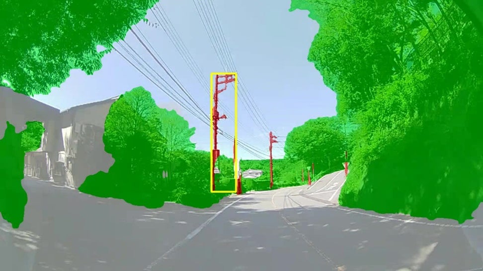 本製品は、インフラ設備の巡視・点検車両等に装着したドライブレコーダーが記録した電柱と樹木の映像をクラウド上のAIで分析することで、樹木と電柱の接触による停電事故のリスクを自動判定し、点検が必要な箇所を地図上に表示します。停電事故のリスクを低減するため樹木を伐採するなどの予防保全とメンテナンス作業員の現場出向を削減し、安定したインフラの供給を支援します。