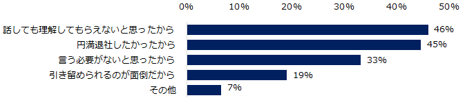 ・何も変わらないと思っていたし、辞める決心がついていたため伝える意味がないと思った。(20代男性)