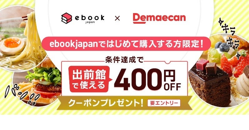 「ebookjapan」で初めて電子書籍を購入する方が、キャンペーンへのエントリー後、期間中に「ebookjapan」で電子書籍を2,000円以上ご購入いただくと「出前館で使える400円OFFクーポン」がもらえます。