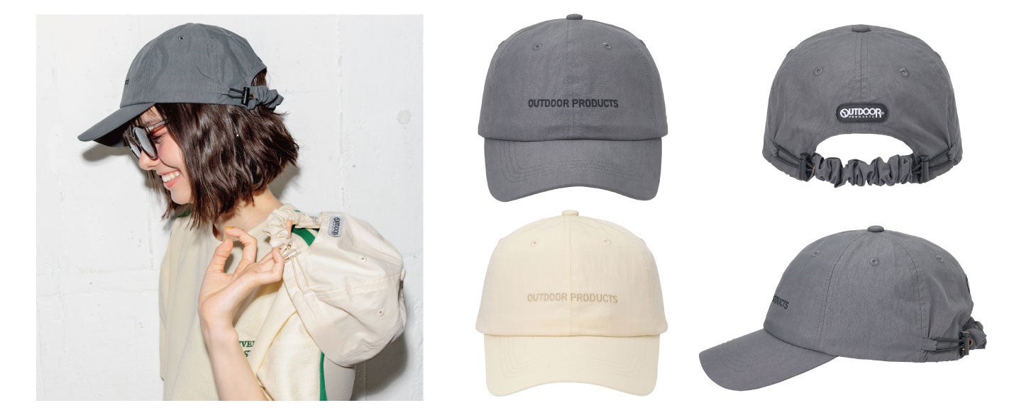 帽子は持っているけれど、いつも似たデザインに手が伸びがち。そんな方はぜひ、普段とはちょっと違うカラーや形にチャレンジしてみて!思いのほか、その日のワンポイントになったりテンションをあげてくれたりと新しい発見につながるかも。今季アイテムから特に注目したいのが、最近バッグでもトレンドとなっているバックベルトにギャザーをあしらったデザインの『OUTDOOR PRODUCT ギャザーベルトキャップ/¥3,850』。カジュアル感を出しつつスポーティーになり過ぎないところがポイントです!