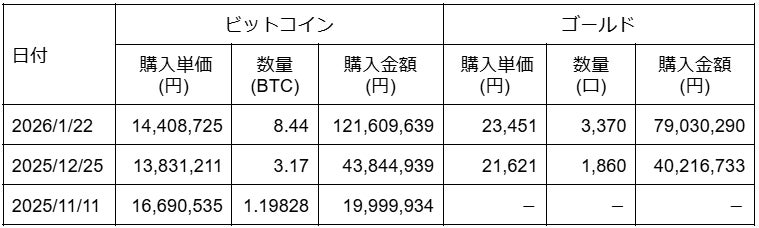 ビットコイン及びゴールドの追加購入に関するお知らせ