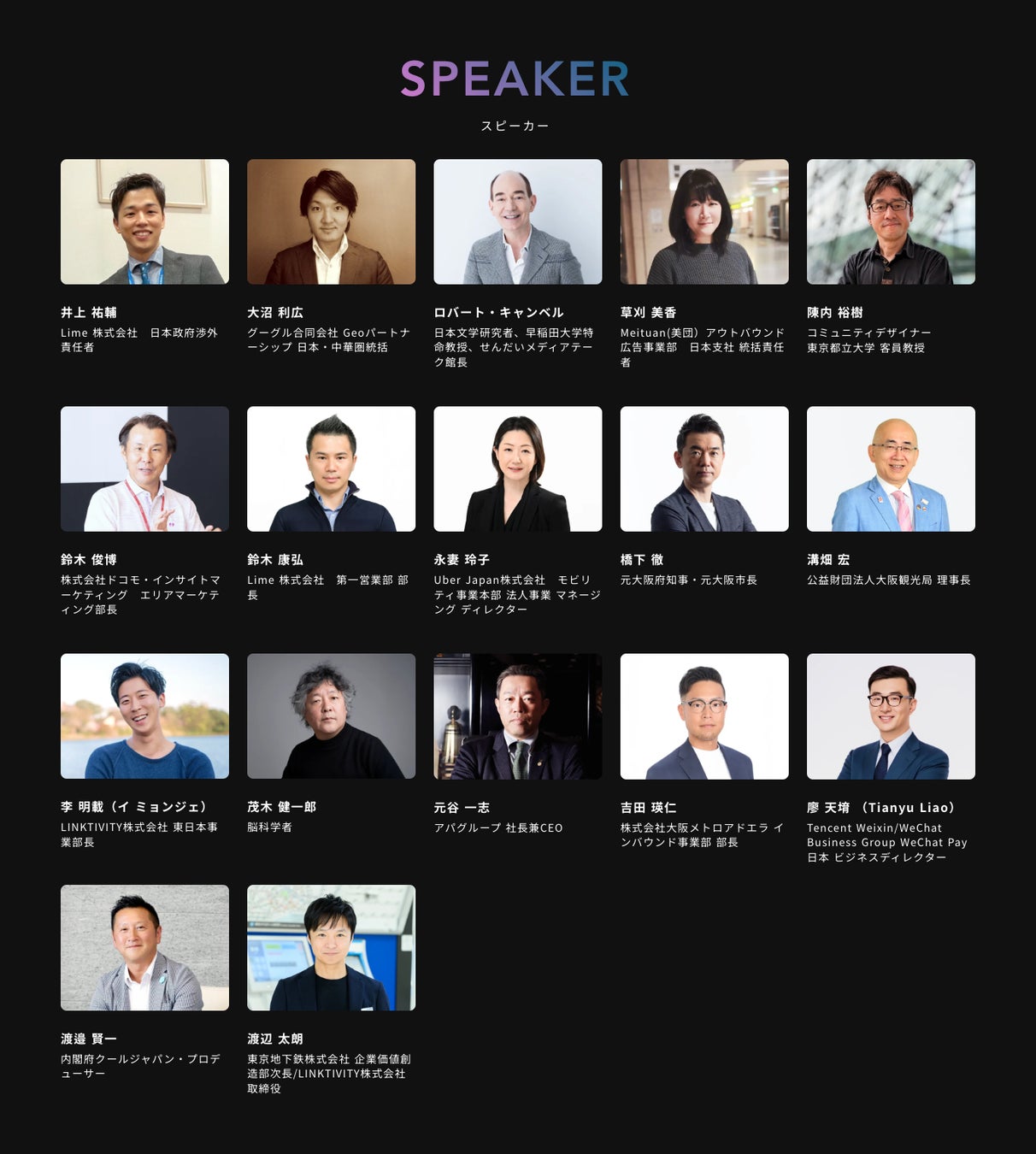 登壇者第一弾(敬称略・順不同)