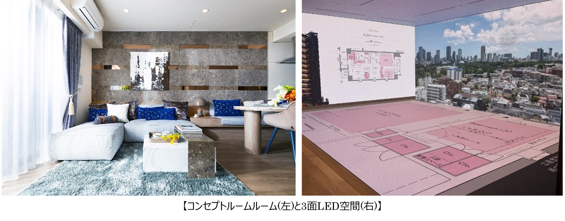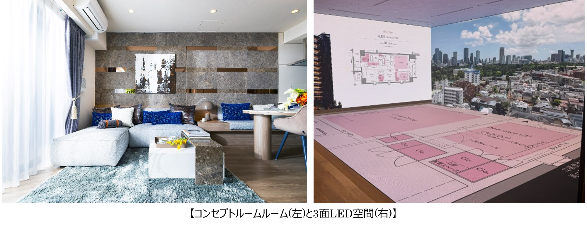 本ギャラリーには、新築分譲マンションのコンセプトルームの他に3面のLEDで空間を体感するデジタルコンテンツを設けております。ご来場いただくお客様は1物件に留まらず、複数物件を比較検討いただくことができます。2027年までには累計10物件以上の新築分譲マンションを取り扱う予定です。