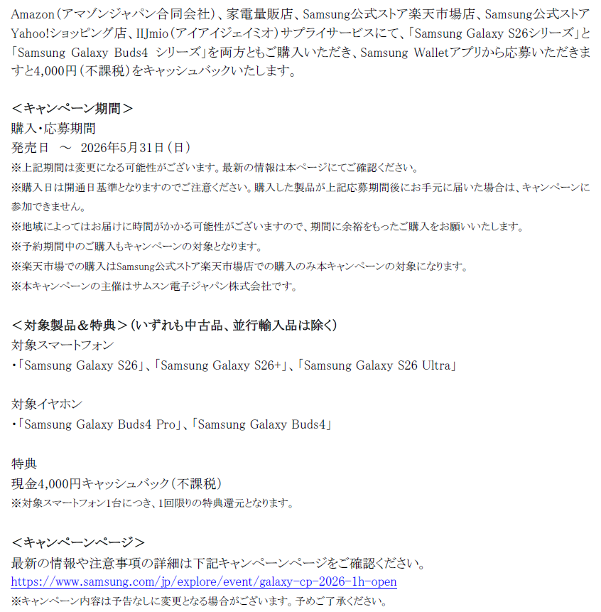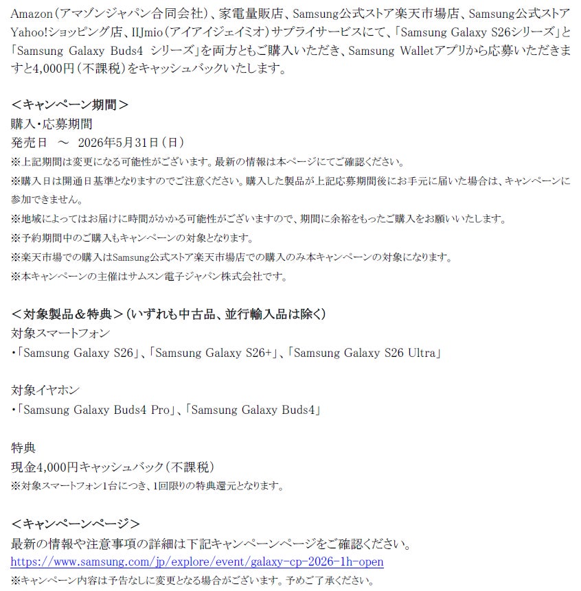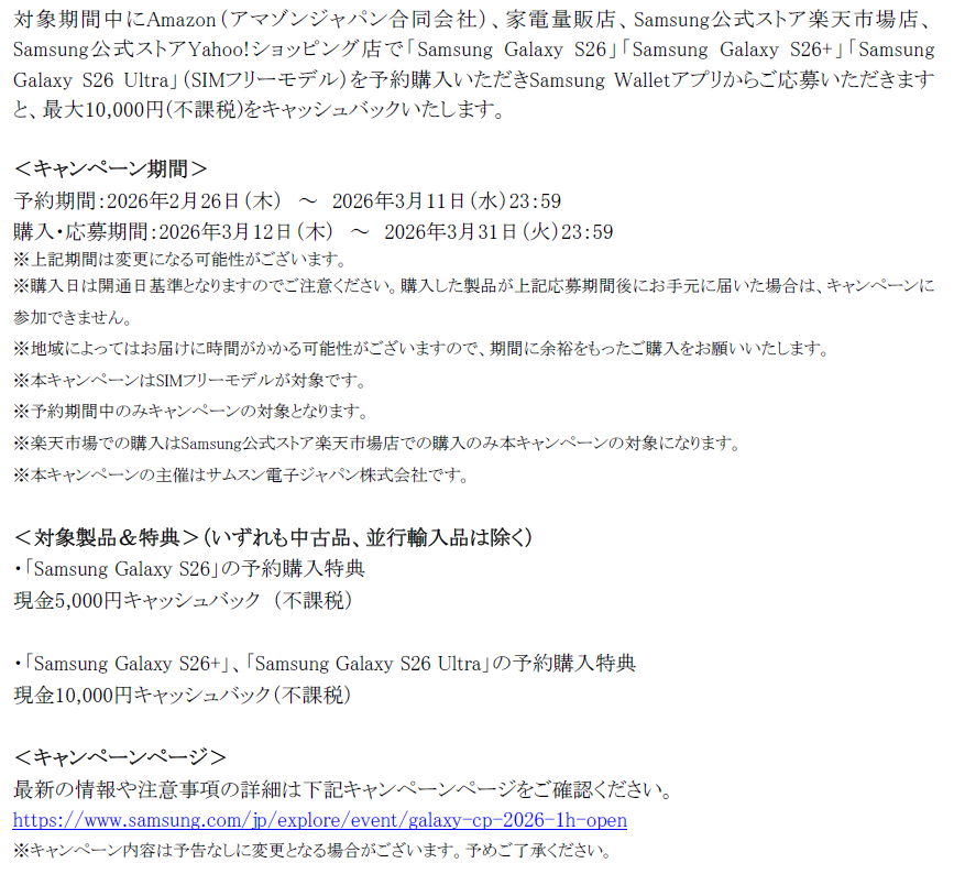 ■Samsung Galaxy S26シリーズ発売記念 購入キャンペーン